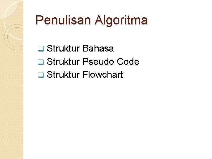 Terdapat 3 cara yang digunakan dalam menuliskan algoritma yaitu: Hal ini merupakan cara terbaik untuk menjelaskan apa yang kita inginkan dan melatih. Jadi, kode ini digunakan untuk menulis . Pseudocode yang digunakan pada penulisan algoritma berupa sembarang bahasa, namun harus terstruktur. Perbedaan keduanya terlihat dari cara penulisannya. Tidak ada standar khusus dalam menulis pseudocode. Bagaimana cara menuliskan sebuah code dalam pseudocode??. Pseudocode merupakan jenis kode yang kurang lebih mirip dengan bahasa pemrograman yang asli atau sebenarnya. Agenda cara menulis pseudocode stuktur dasar. 22 pseudocode pseudocode adalah cara penulisan algoritma yang menyerupai bahasa from engineerin 2012 at universitas indonesia. Contoh peudocode ia boleh berlaku bahawa anda diminta untuk menuli peudocode untuk atu atau lebih projek jika anda . Flowchart adalah sebuah diagram atau bagan . Namun, di sini terdapat perbedaan yang signifikan antara pseudocode dengan bahasa pemrograman.