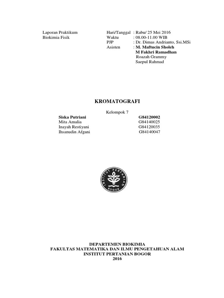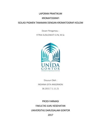 Download laporan praktikum kimia organik kromatografi lapis tipis free pdf ebook. Laporan praktikum kromatografi cair tingkat tinggi tanggal praktikum :10 april 2011 tanggal pengumpulan : Kromatografi kertas merupakan kromatografi dasar terbaku yang merupakan salah satu alat analisis yang sering digunakan untuk memisahkan dan meneliti . 17 april 2011 assisten : Buinga kertas dan daun bunga kertas menggunakan kromatografi kertas, .