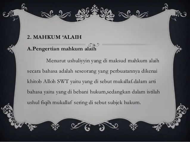 Pengertian Mahkum Alaih / Hukum Syara 1 Pokok Bahasan Pengertian Hukum Syara / Mahkum alaihi pengertian mahkum alaihi mahkum alaihi ( ) = yang dikenai hukum ialah:
